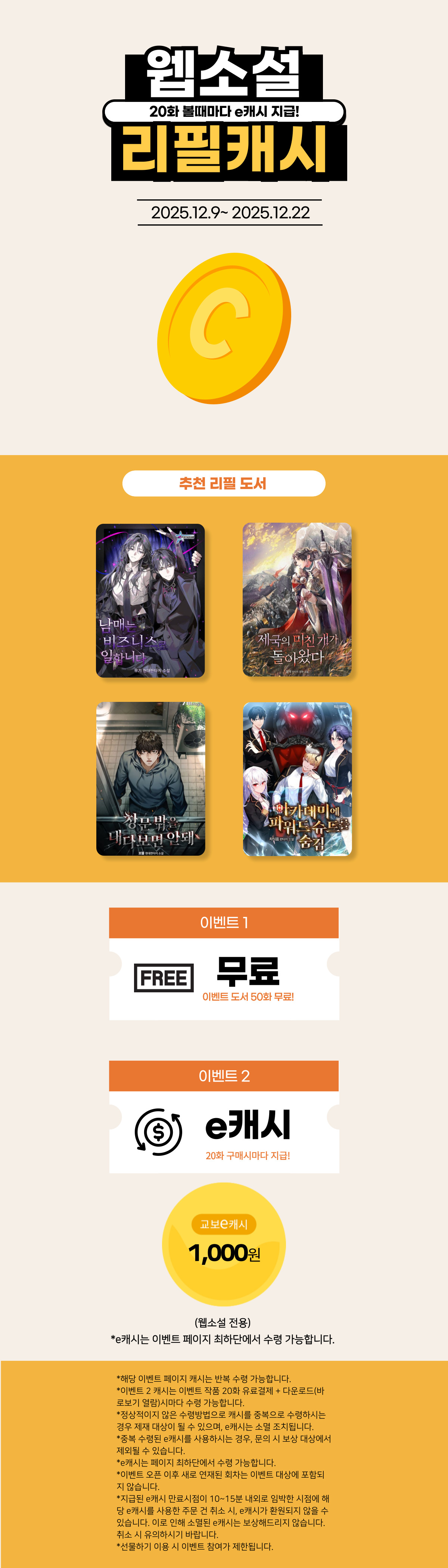 [총 450화 무료] 판타지 리필캐시 (12/9~12/22)
