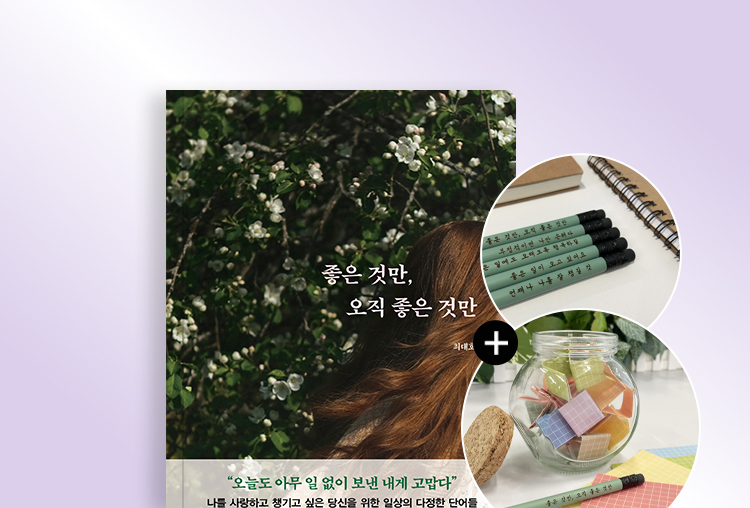 '좋은 것만, 오직 좋은 것만 + 각인 연필 + 메모지 + 유리병' 상품은 선착순 50개까지만 판매가 진행됩니다.