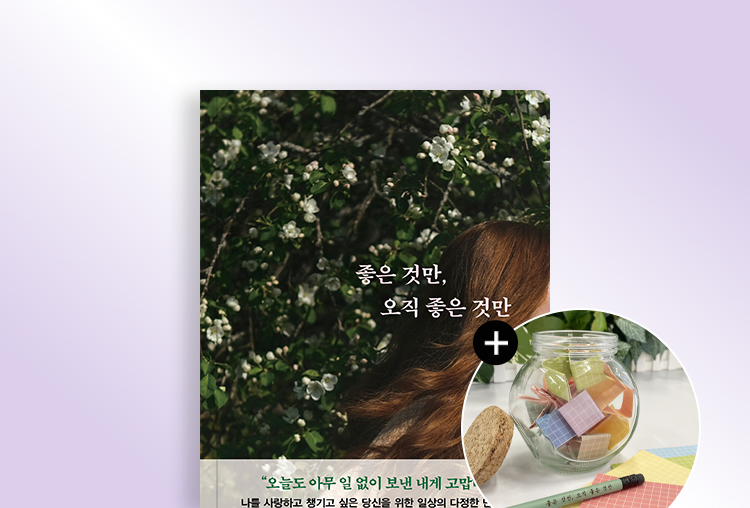 행복이 내게 오지 않는다고 생각하지 말자. 행복은 내가 찾으려고만 한다면, 어디에나 존재한다. 『좋은 것만, 오직 좋은 것만』을 다 읽고 난 뒤에는 알게 될 것이다. 일단 시도했다면 결과가 무엇이든 티끌이라도 얻을 수 있다는 것을. 오늘 놓친 버스는 내일 더 멋진 바퀴를 달고 다시 올지도 모른다는 것을. 걱정과 자책으로 나를 괴롭히던 퇴근길, 하늘 위에는 언제나 옅은 자주색의 아름다운 노을이 내 어깨를 토닥여주고 있다는 것을. 내가 올려다보기만 하면 그 위로를 온전히 마주할 수 있었다는 사실을. 그러니 괜찮다. 오늘 하루가 어땠든 상관없다. 일단 어두운 밤이 됐고 따끈한 이불 덮고 누웠으니까. 그렇게 행복의 조각을 차곡히 모아가는 방법을 이 책에서 얻어보자