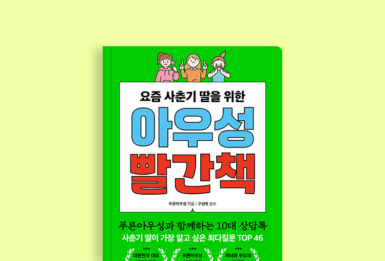 《아우성 빨간책》은 대한민국 대표 성교육기관 푸른아우성에서 50만 건의 성 상담 사례 중 요즘 사춘기 딸이 가장 궁금해하는 46개의 질문과 〈부모님 궁금증〉 6가지, 〈함께 읽는 성 이야기〉 7가지 총 59가지의 이야기를 통해 해결책을 제시합니다. Part 1에서는 사춘기 발달에 따른 가슴의 변화와 생리, 생리대와 탐폰 사용법 등의 궁금증을 해결합니다. Part 2는 이성 친구와의 만남과 건강한 이성 교제를 위한 해결책을 제시합니다. Part 3에서는 음란물, 몸캠피싱, 딥페이크 등 디지털 성범죄 예방과 피해 대처법 등을 소개합니다. 이 책은 자라나는 사춘기 청소년에게 꼭 필요한 지혜와 지식을 전달해 주어 올바른 길로 인도할 것입니다.