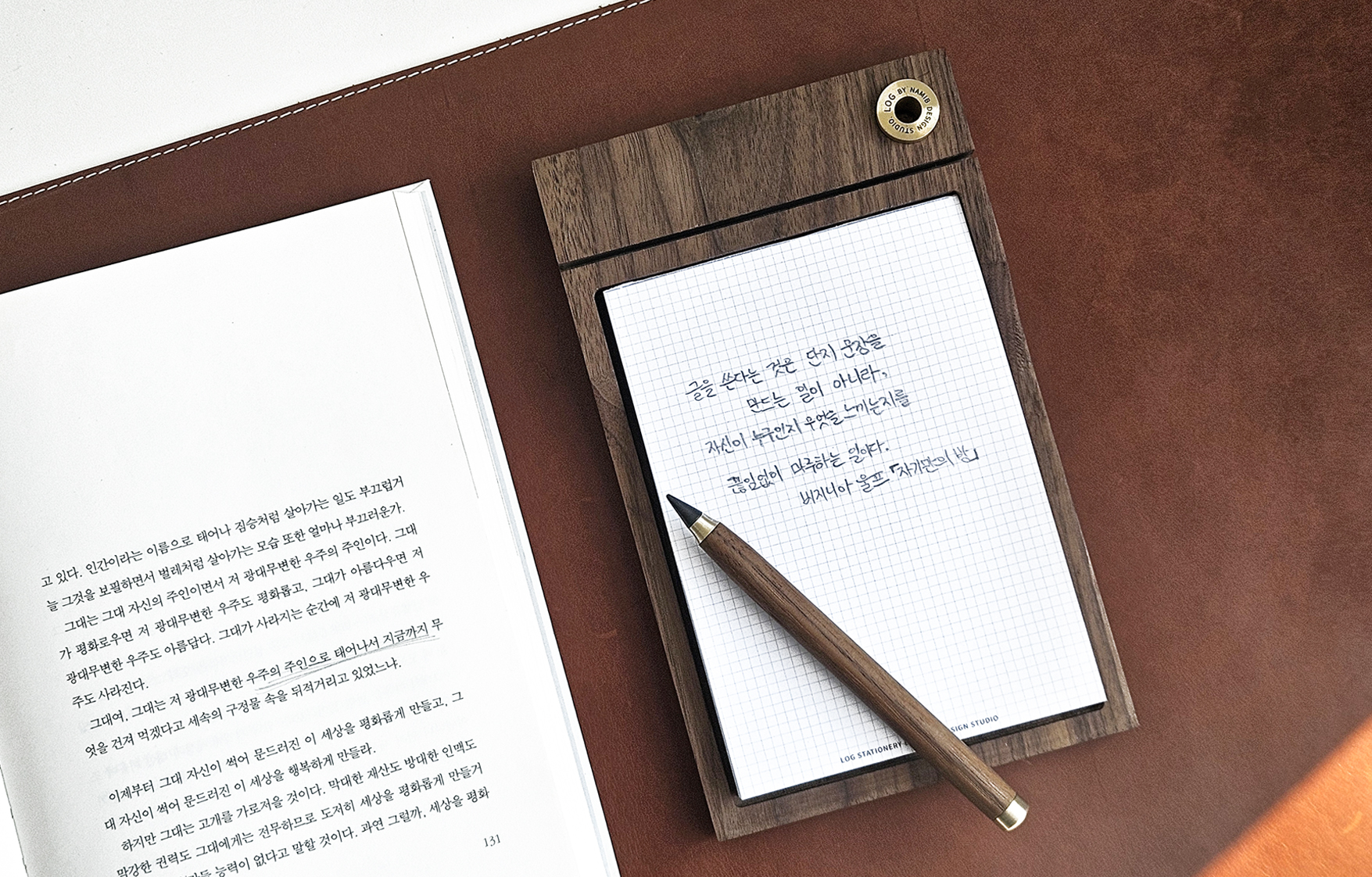 독서의 여운에 깊이를 더하는 데스크테리어의 완성, 북미산 최고급 월넛 나무로 완성된 데스크테리어 아이템으로 당신의 서재에 멋을 더해 보세요.