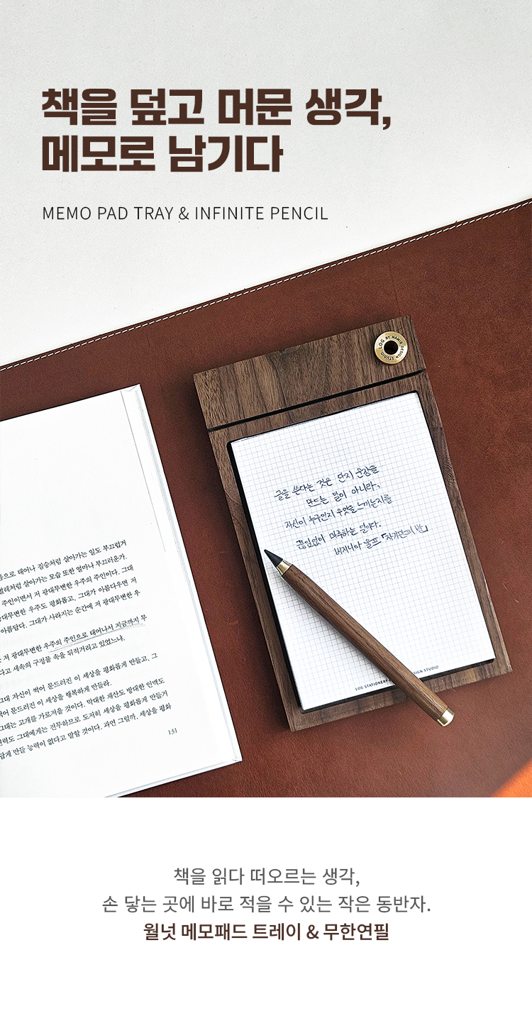책과 가까이에서 메모하기 좋은 메모패드 트레이+무한연필 세트를 추천해드립니다.