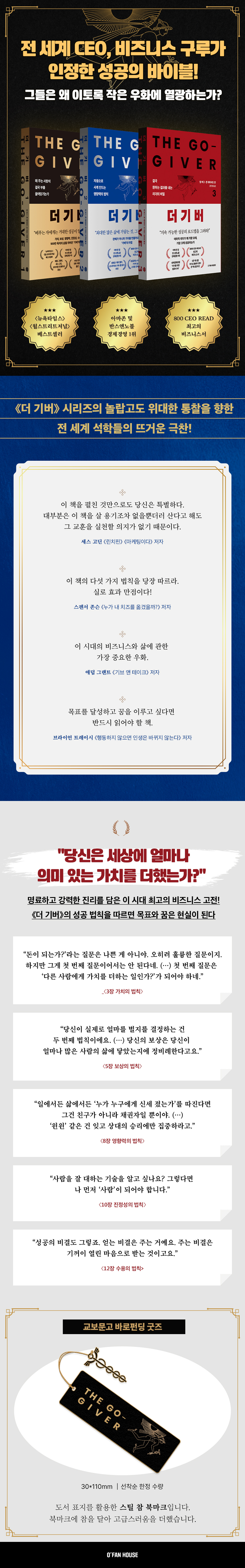 부와 성공의 패러다임을 뒤집은 세계적인 베스트셀러 ‘더 기버 시리즈’가 전면 개정판으로 새롭게 독자들과 만난다. ‘더 기버 시리즈’는 2008년 초판이 출간된 이래 〈뉴욕타임스〉 베스트셀러, 〈월스트리트저널〉 베스트셀러, 〈비즈니스위크〉 최장기 베스트셀러, 아마존 및 반스앤노블 경제경영 1위 등을 석권하며 비즈니스계의 살아 있는 고전으로 자리매김했다.